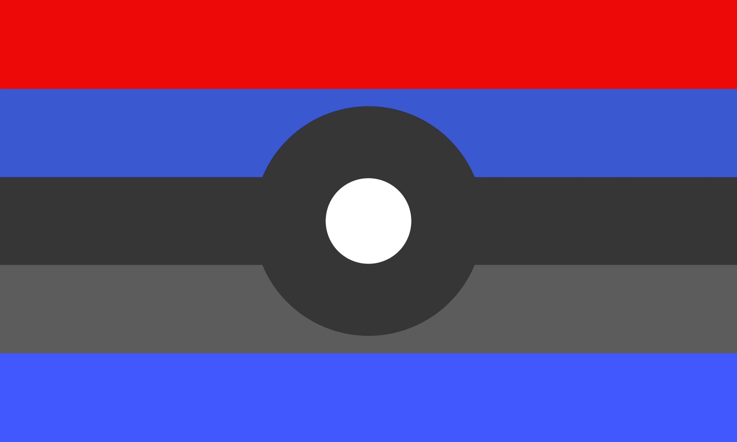 The flag's colors are red, darker blue, lighter grey, and lighter blue. In the middle of the light grey and dark blue is a darker grey stripe with a white circle. All these colors represent pokeic identities, pokegenders, and the Pokemon Accelgor itself.