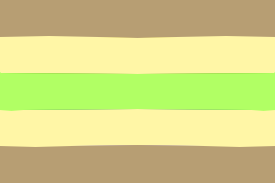 The flag was created on October 29th, 2018 by user Anya111. The brown stands for kintypes, pale stands for the realization, and green stands for any gender.