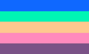 Original animegender flag was made by Tumblr user imoga-pride on January 13, 2019.[1] Another version of the flag was made by Tumblr user rando-pride-flags on October 20, 2020.[2]