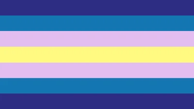 The original aporavir flag was created on September 27, 2020, the blue stripes representing the gendervir identity and the purple and yellow stripes representing aporinity.[1] A redesigned version of the flag was made by Tumblr user neopronouns on January 18th, 2021.[2]