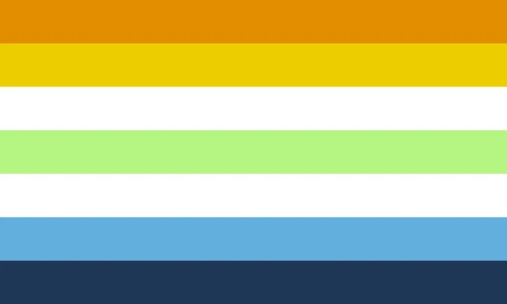 The green flash flag is one of the most popular sunset designs, incorporating both aroace and agender elements intuitively. It is named after the rare green flash atmospheric phenomenon that can occur at sunset. The spectral flag seamlessly blends these sunset color elements into a natural spectrum, while FormicaRufa's design retains the black margins of the original agender flag.