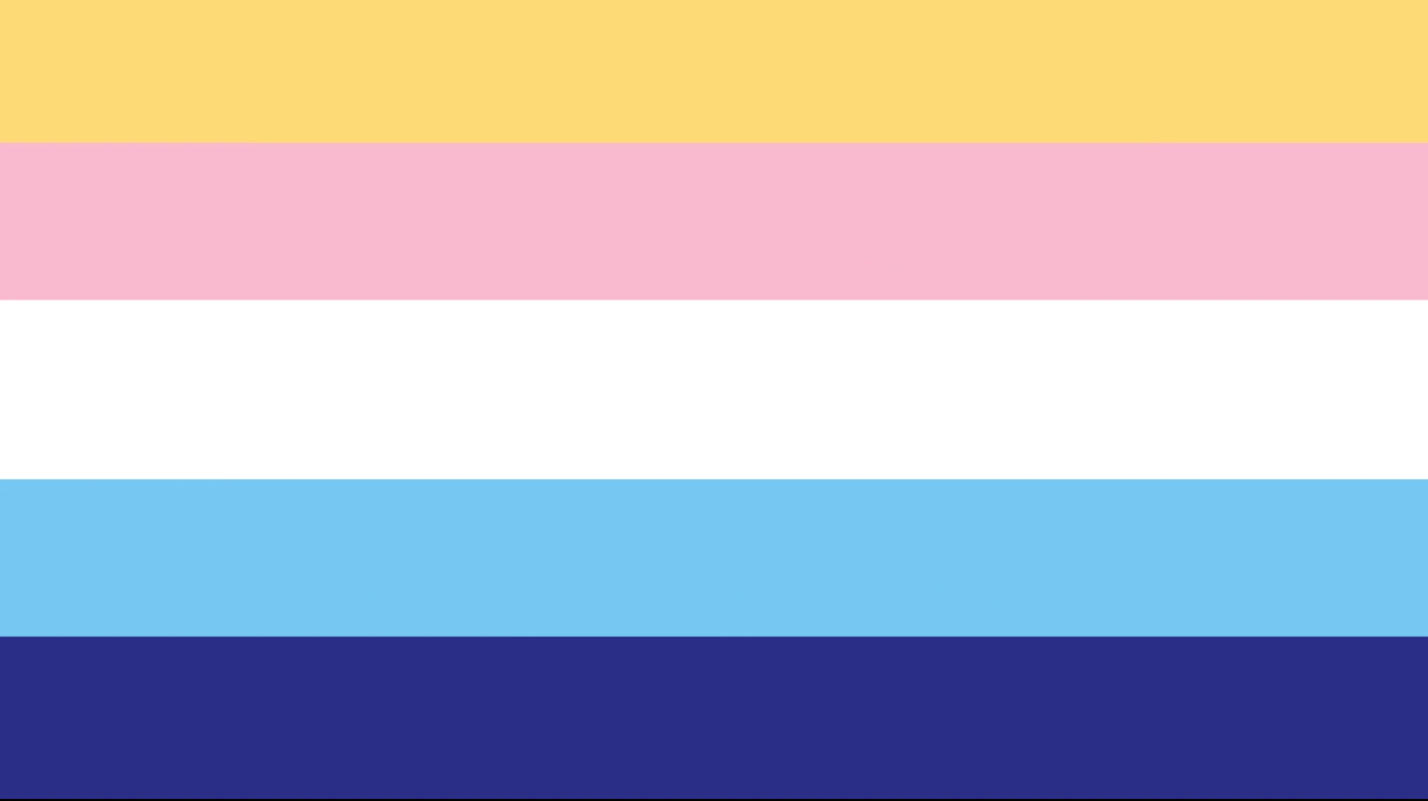 The contragender flag was also coined by FANDOM user Hoixe on an unknown date, presumably the coining date. The yellow represents daytime; the pink represents womanhood, and is associated with femininity; the white represents all non-binary genders; the light blue represents manhood, which is associated with masculinity; and the dark blue represents nighttime, when one’s gender shifts.[1]