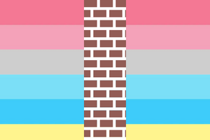 The wall represents the blocked off part of the gender, and the genderflux flag in the background represents the gender that's trying to be reached.