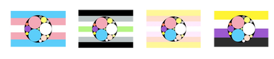 The symbol can also be included in the existing gender flags by being placed ontop of them, allowing people to specify that they identify as genre-gender in addition to whichever gender identity the flag would otherwise be representing.