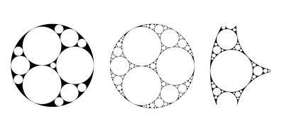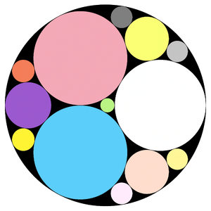 This arrangement of circles is in fact a low level of detail fractal. Fractals are patterns that get repeated the more you “zoom” in, this particular fractal is called an Apollonian gasket|apollonian gasket and was chosen because a circle is easy to integrate into existing symbology as well as the appealing aesthetic and similarity between genres / sub-genres to the circle / sub-circles.