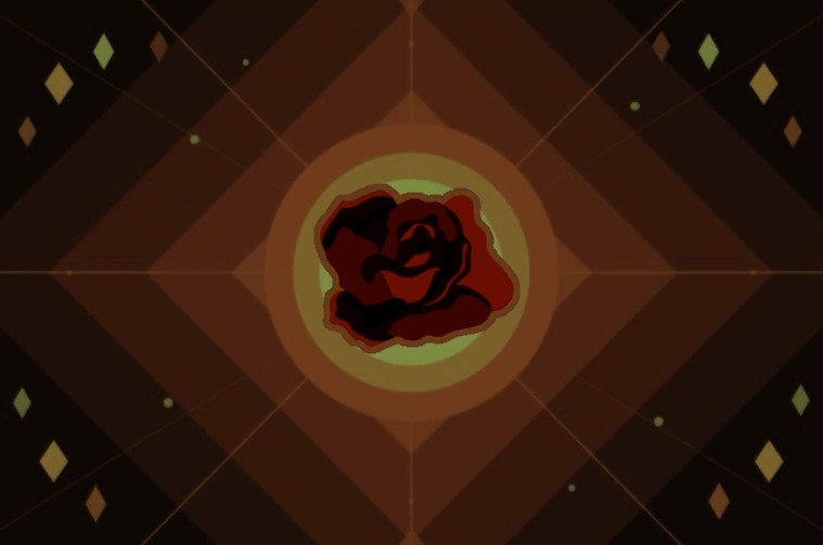 The small diamond symbols represent magic. The concentric diamond gradient represents darkness and despair turned inward towards the core. The lines extending outward are symbolic of the labyrinths. The rose symbol represents the gothic, art-nouveau style of the mages and their labyrinths.