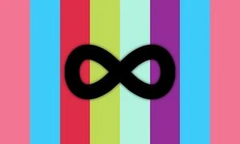 The neuroflux flag was created by Tumblr user pupyzu on March 17, 2021.[1] It has eight vertical stripes with a black infinity symbol in the center.