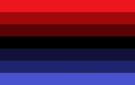 The original flag was created by LGBTQIA+ Wiki user Arwen on December 19, 2021.[1] The alternate flag was created by LGBTQIA+ Wiki user Vaporwavejuiice on March 13, 2021.[2] Blue and red represent, respectively, mental and physical pain; black represents emptiness.[1][2]