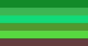 The plantcoric flag was created by user CaseySeal11 on May 2, 2021. The shades of green represent the different colors of plants, and the brown represents the earth.