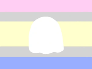 The Qotios flag was made on January 9, 2021, by FANDOM user Starfruit110. The flag has grey to represent unalignment, pink to represent femininity, yellow to represent being non-binary/trigender, blue to represent masculinity, and a ghost to represent the spectral feeling of gender.