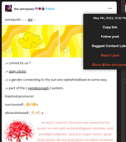 | “ | sunsquish: a gender under the gendersquish system related to the sun/a sun and squishmallows! could be connected to sun themed squishmallows, suns who like squishmallows, etc! | ” |