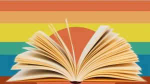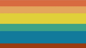 The variations in stripe width represent the way books on a bookshelf are not uniform size. The book symbolises stories and storytelling. The orange circle represents one’s gender being eclipsed by their identity as a writer.