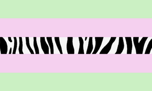 The zoogender flag was coined by user DustyHoney, Green stripes represent flora[2] and fungi[3], while the pink stripes represent fauna[2]. The zebra-striped stripe represents the balance between all life on Earth.